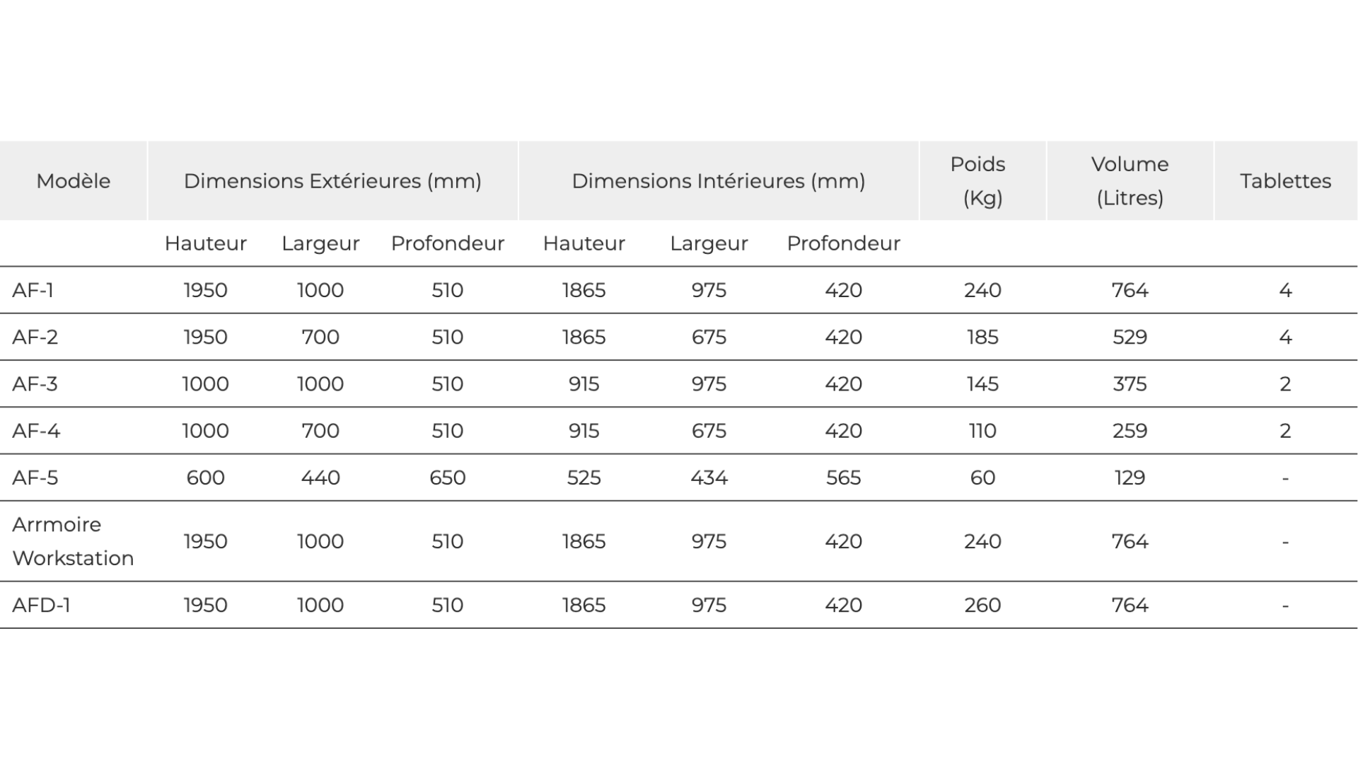 Volume (L) | Dimensions EXT (cm) | Dimensions INT (cm) | Poids(kg) | |